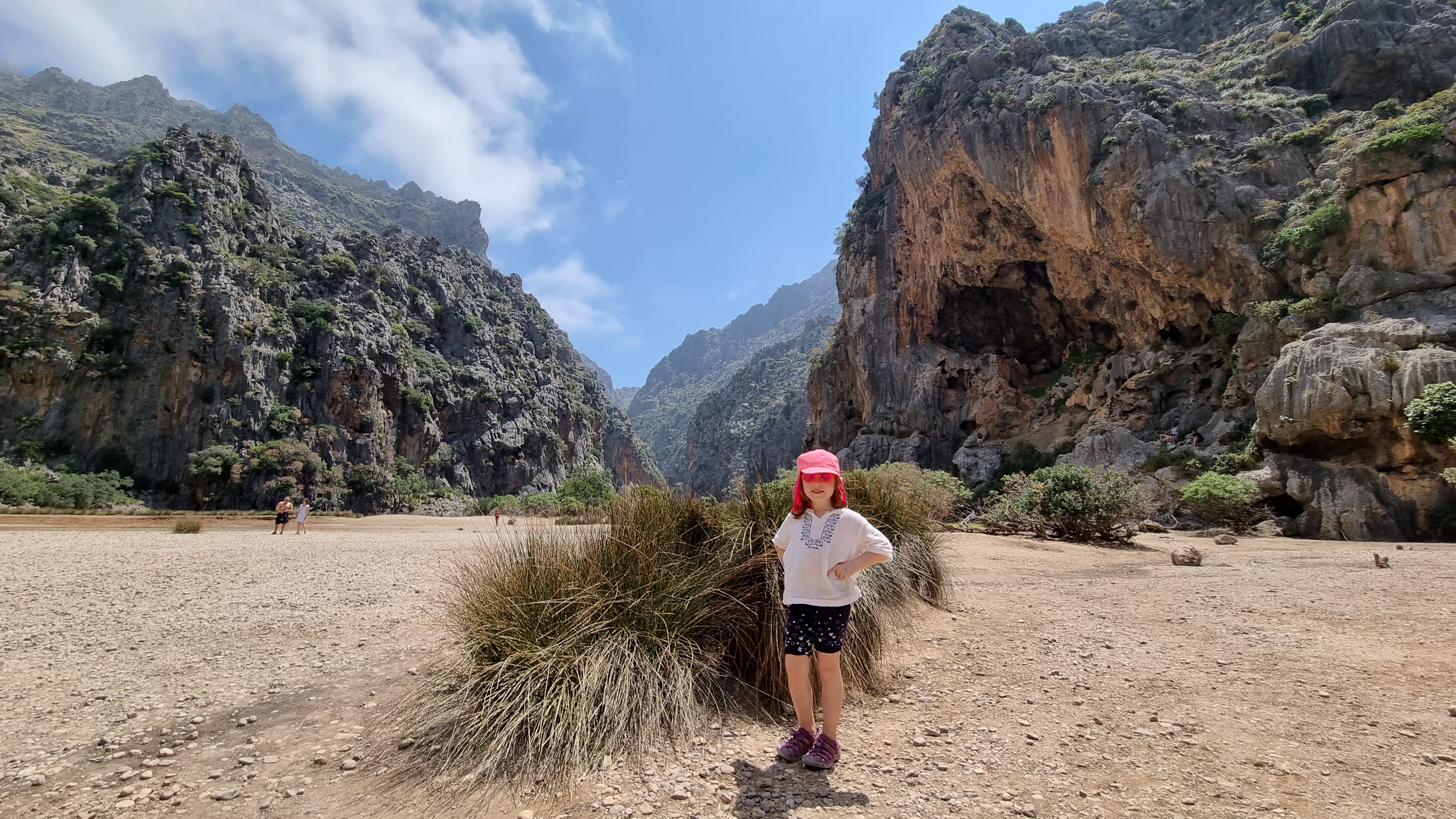 Když pominu přeplněnou pláž a příchozí tunely. je to moc pěkná procházka kaňonem Torrent de Pareis. Magické skály, jeskyňky, jezírka. Pokračovat můžete i dále, než je vyznačena naše trasa. Ale narazili jsme na cedulku "danger". Prvních pár desítek metrů bylo lezení po kamenech (nic pro naše malé děti), ale nebezpečné to pro dospělého turistu nijak nebylo.Dále nevíme.